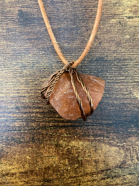 Sunstone Necklace Intertwined with Copper Strand