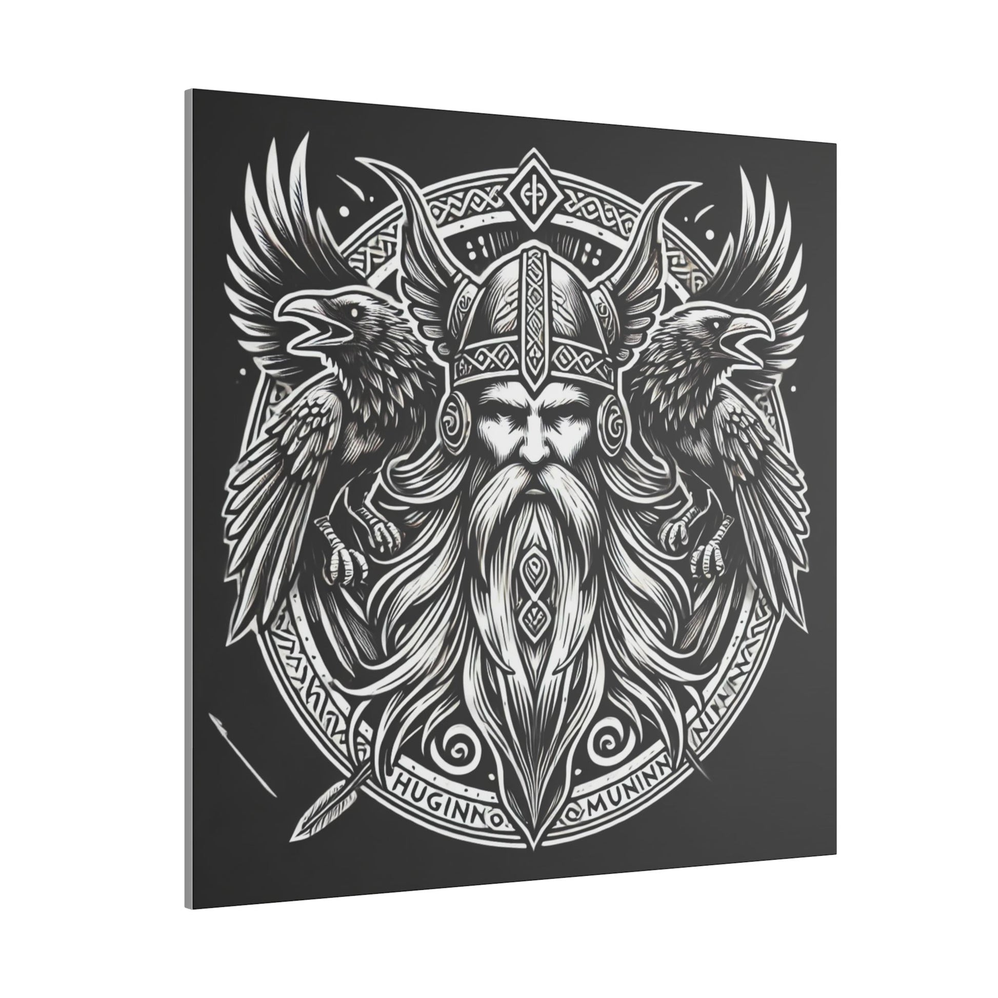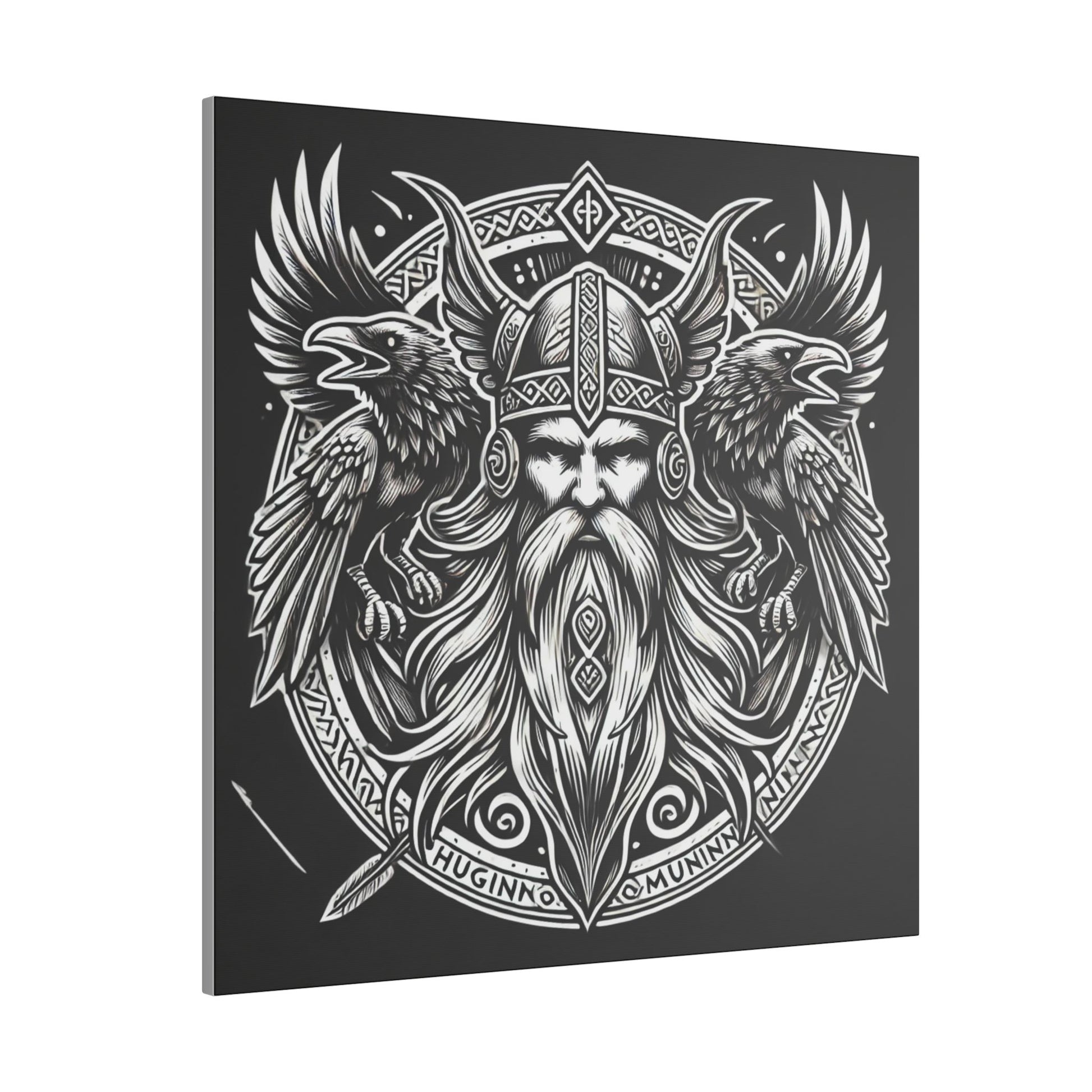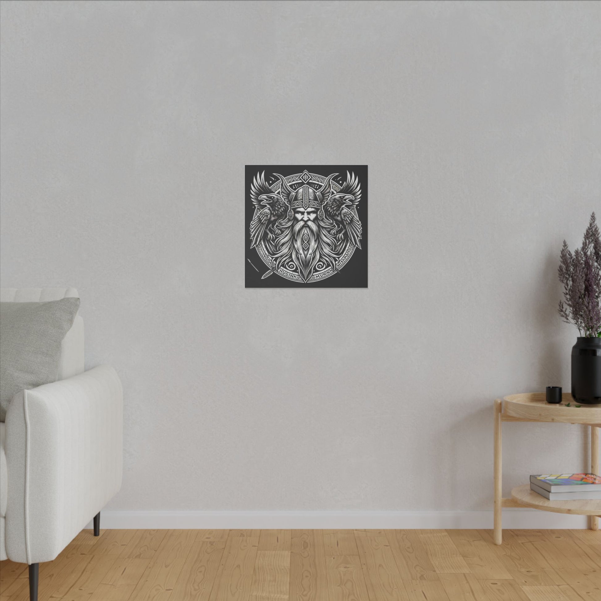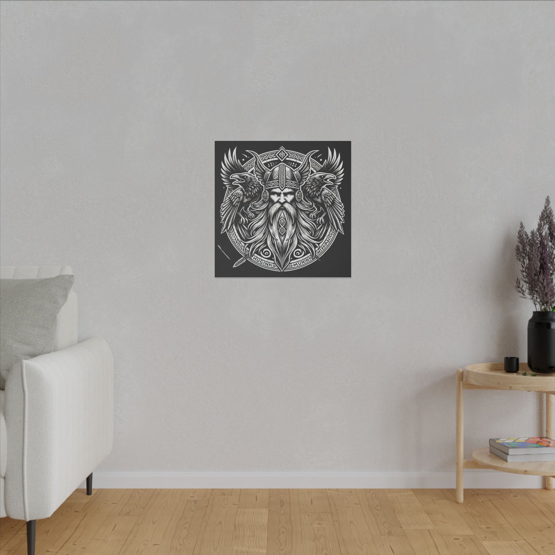A stunning canvas print featuring the Norse God Odin with his two Ravens Huginn and Muninn, providing a mysterious and mystical vibe to your space. Perfect for fans of Norse mythology and those looking to add a unique touch to their home decor. Ideal for holidays like Halloween and celebrations like Comic-Con.