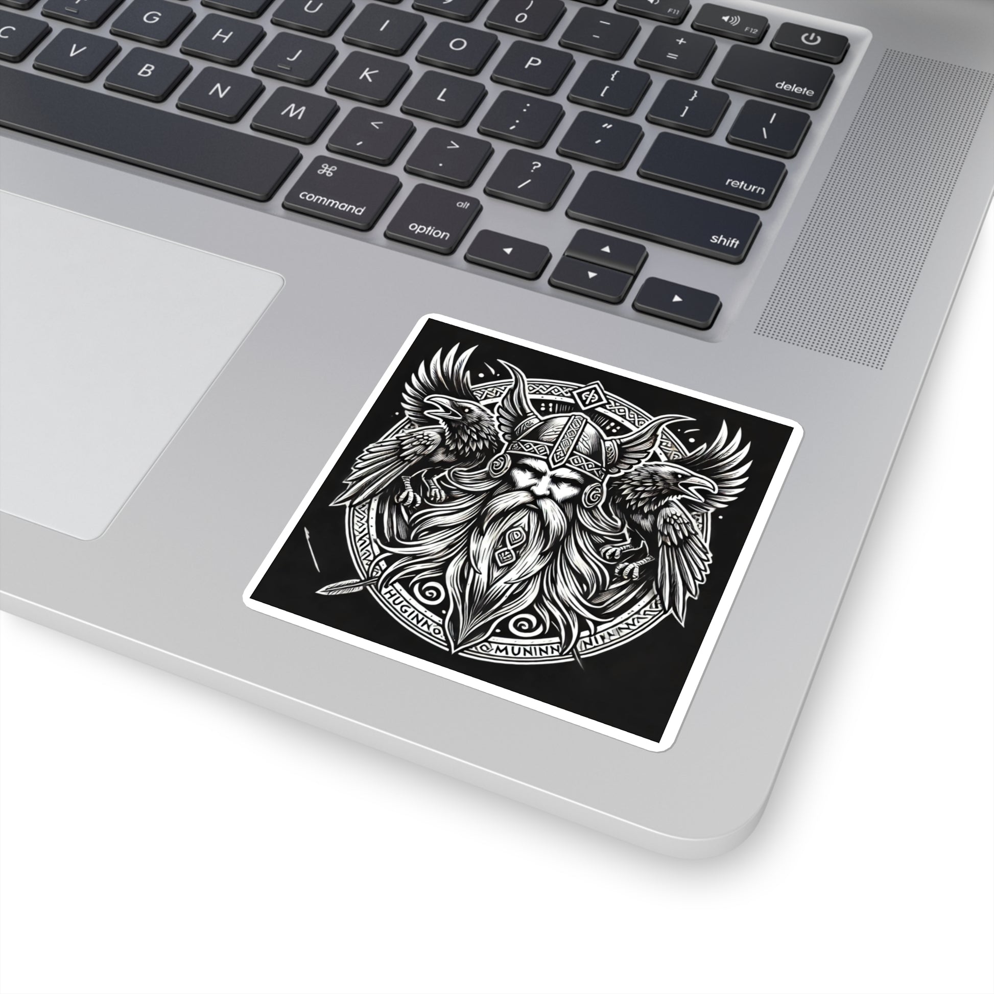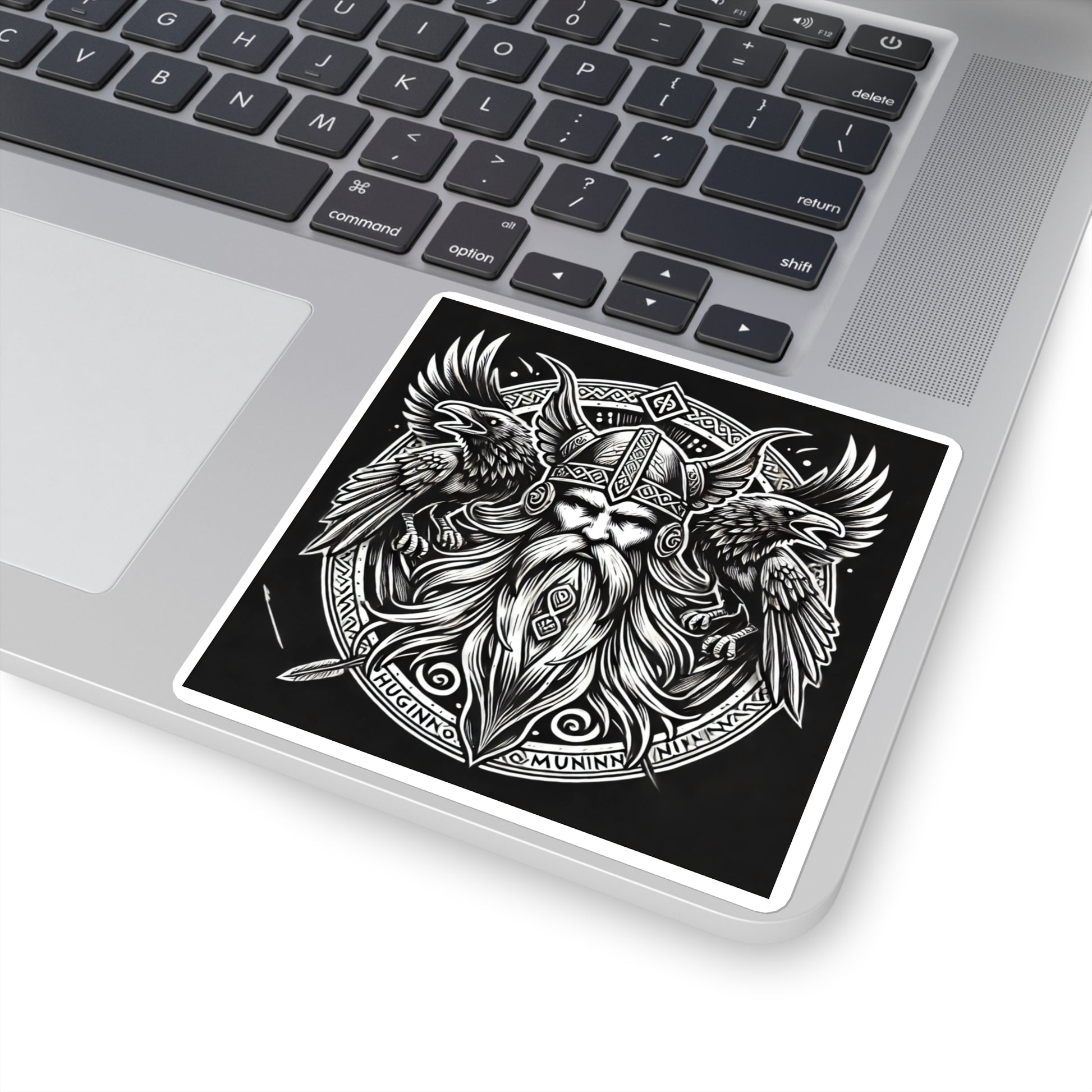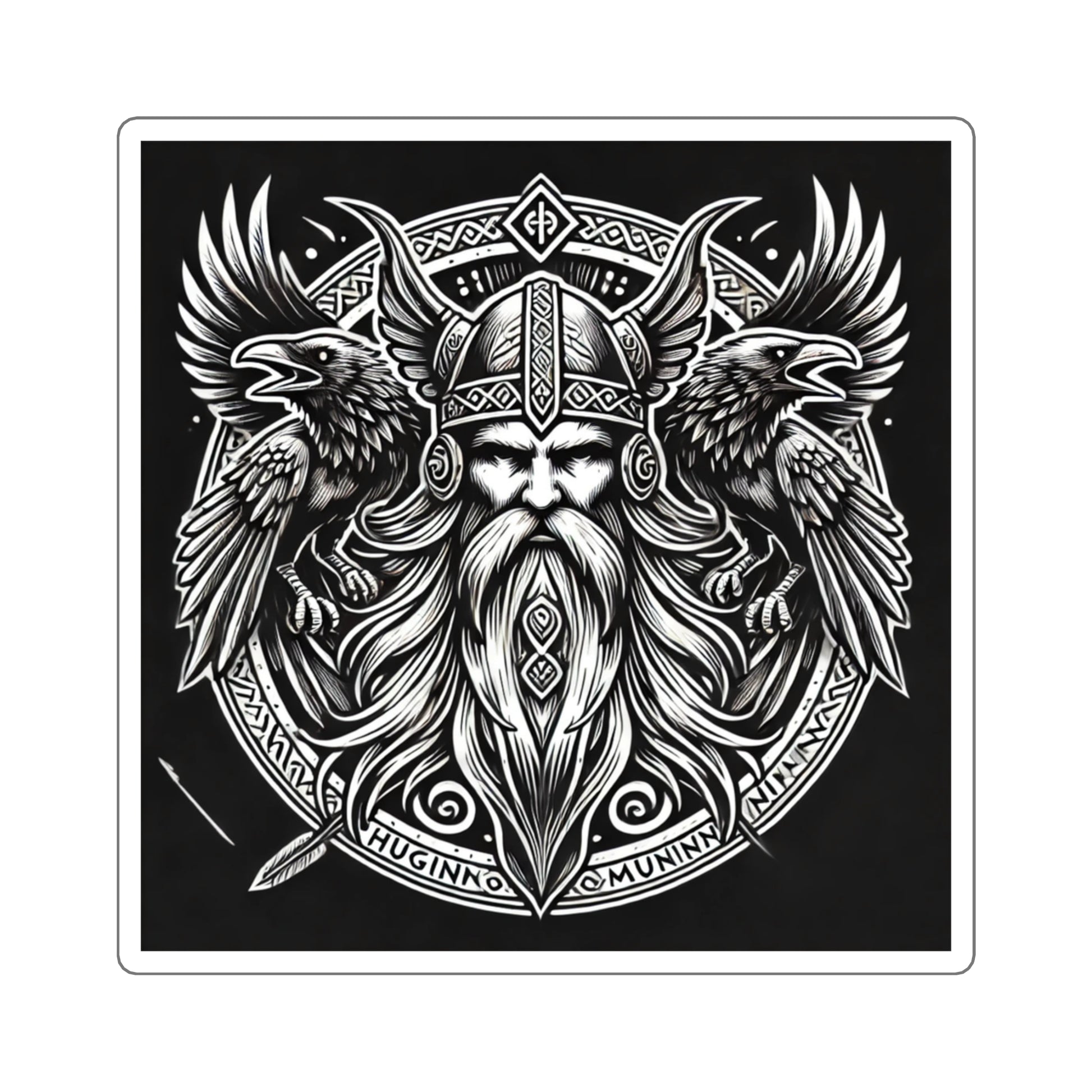 These Square Stickers feature a detailed design of Odin with his Ravens Huginn and Muninn. Perfect for Norse mythology enthusiasts and those looking to add a mystical touch to their belongings. Ideal for decorating laptops, water bottles, notebooks, and more. Great for fans of Odin and those celebrating Viking-related events.